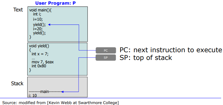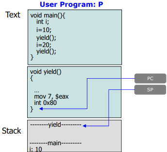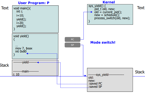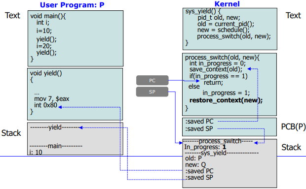- Scenario(시나리오) : P는 yield()를 호출하여 자체 process switch를 일으킨다.