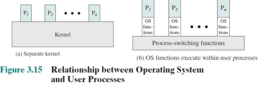 - 각 process image는 커널용 프로그램, 데이터 및 스택을 포함한다.
