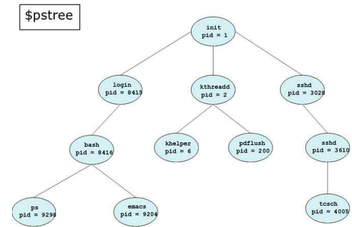 - /sbin/init ( in UNIX) : 다른 것들과 달리 이것은 부팅 중에 커널에 의해 생성됨