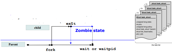 - Linux에서는 종료된 프로세스에 대한 task_struct가 여전히 존재하지만 실행할 수 없음