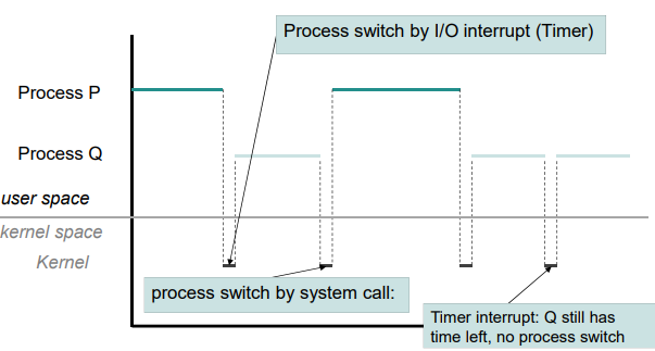- 예를 들어, OS는 timer interrupt를 통해 현재 실행 중인 프로세스가 time slice에 대해 실행되었는지 여부를 확인한다.