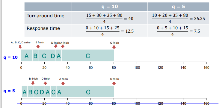 - q가 작을수록 response time은 개선되지만 turnarround time은 악화될 수 있다.