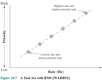 - 세 가지 작업에 필요한 총 사용률이 RMS의 상항(0.753 < 0.779)보다 작기 때문에 RMS를 사용하면 모든 작업이 성공적으로 스케줄링된다.