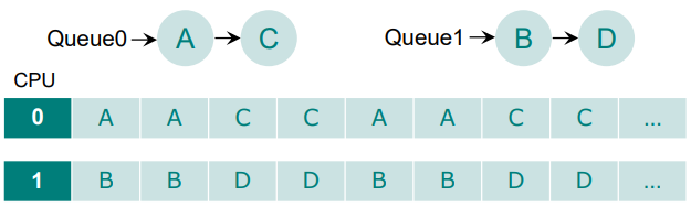 - 각 큐는 특정한 스케줄링 규칙을 따름